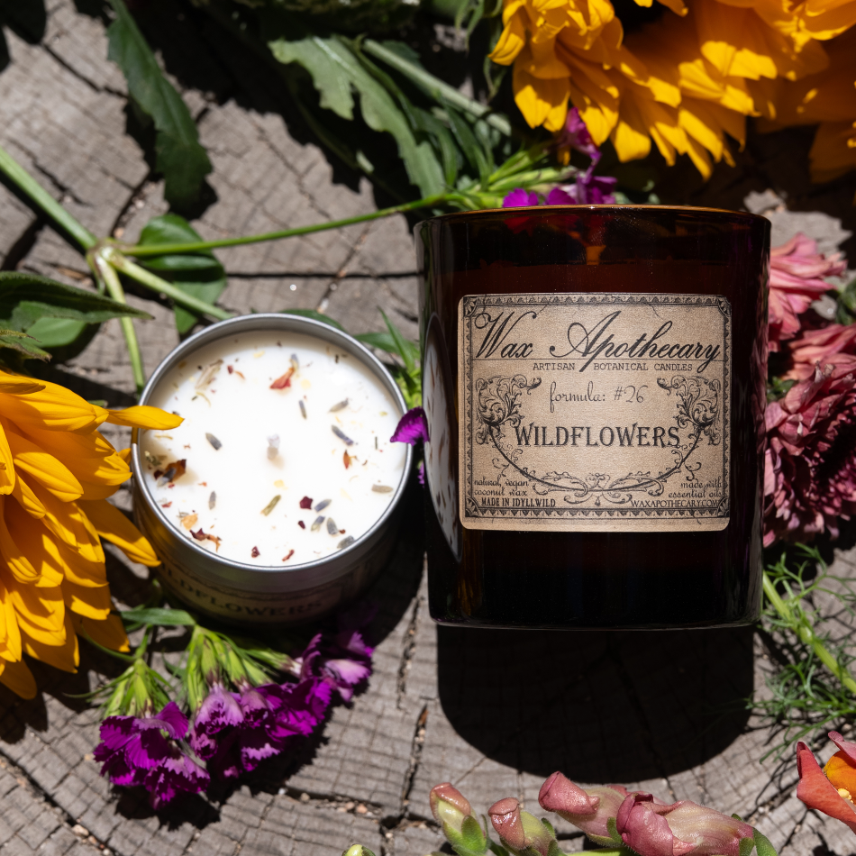 Wax Apothecary's natural handmade herbal and botanical candles are made with plant-based wax & do not contain any chemicals or additives. Every candle has a lead-free cotton wick and is perfumed with genuine, natural essential oil(s) and essential oil blends. Each candle is handmade using artisan methods to infuse the wax with the natural oils and blend in dried flora to create Wax Apothecary's authentic botanical & herbal fragrances.