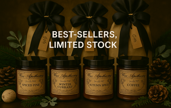 Wax Apothecary's natural handmade herbal and botanical candles are made with plant-based wax & do not contain any chemicals or additives. Every candle has a lead-free cotton wick and is perfumed with genuine, natural essential oil(s) and essential oil blends. Each candle is handmade using artisan methods to infuse the wax with the natural oils and blend in dried flora to create Wax Apothecary's authentic botanical & herbal fragrances.