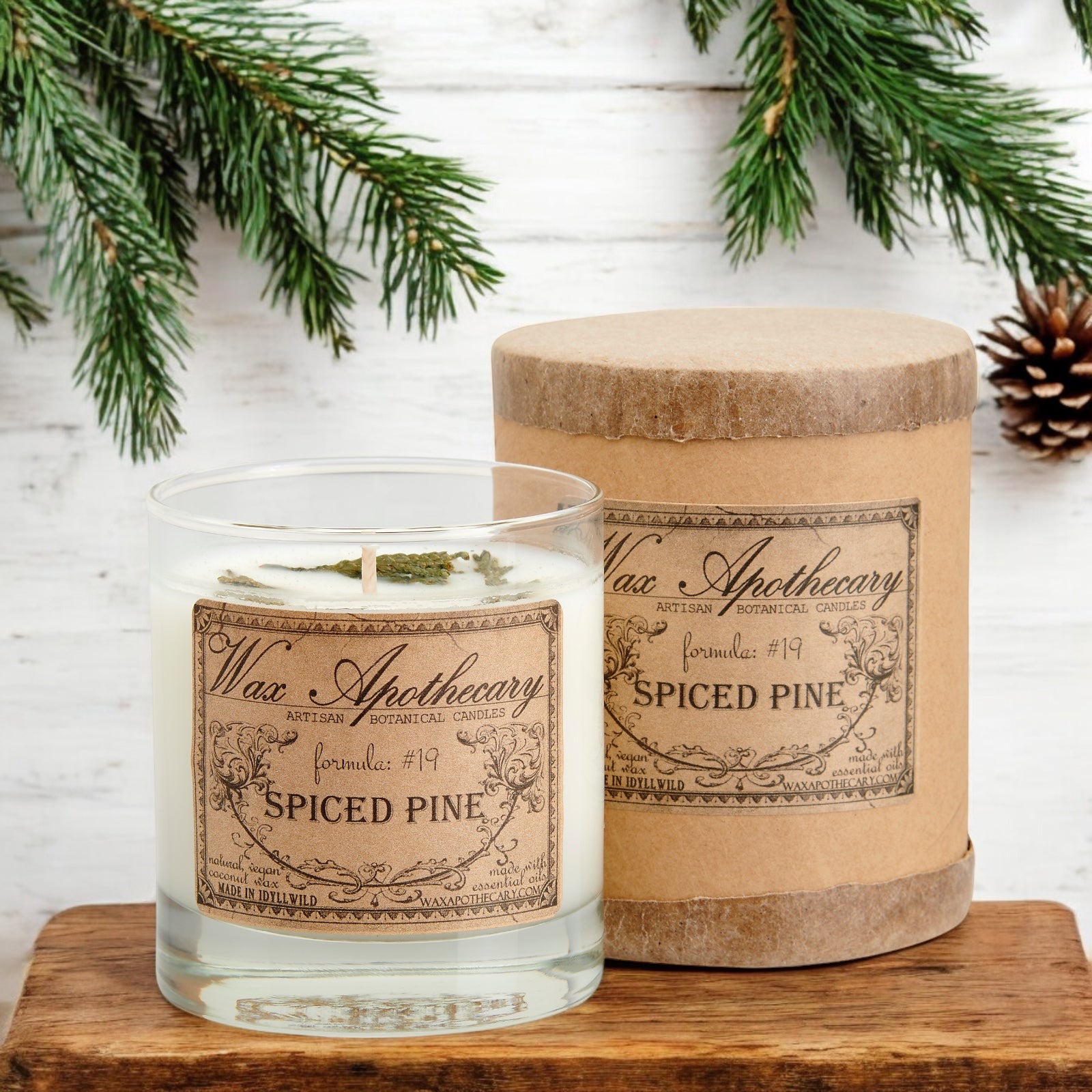 Spiced Pine 7 oz Botanical Candle in Scotch Glass *Seasonal