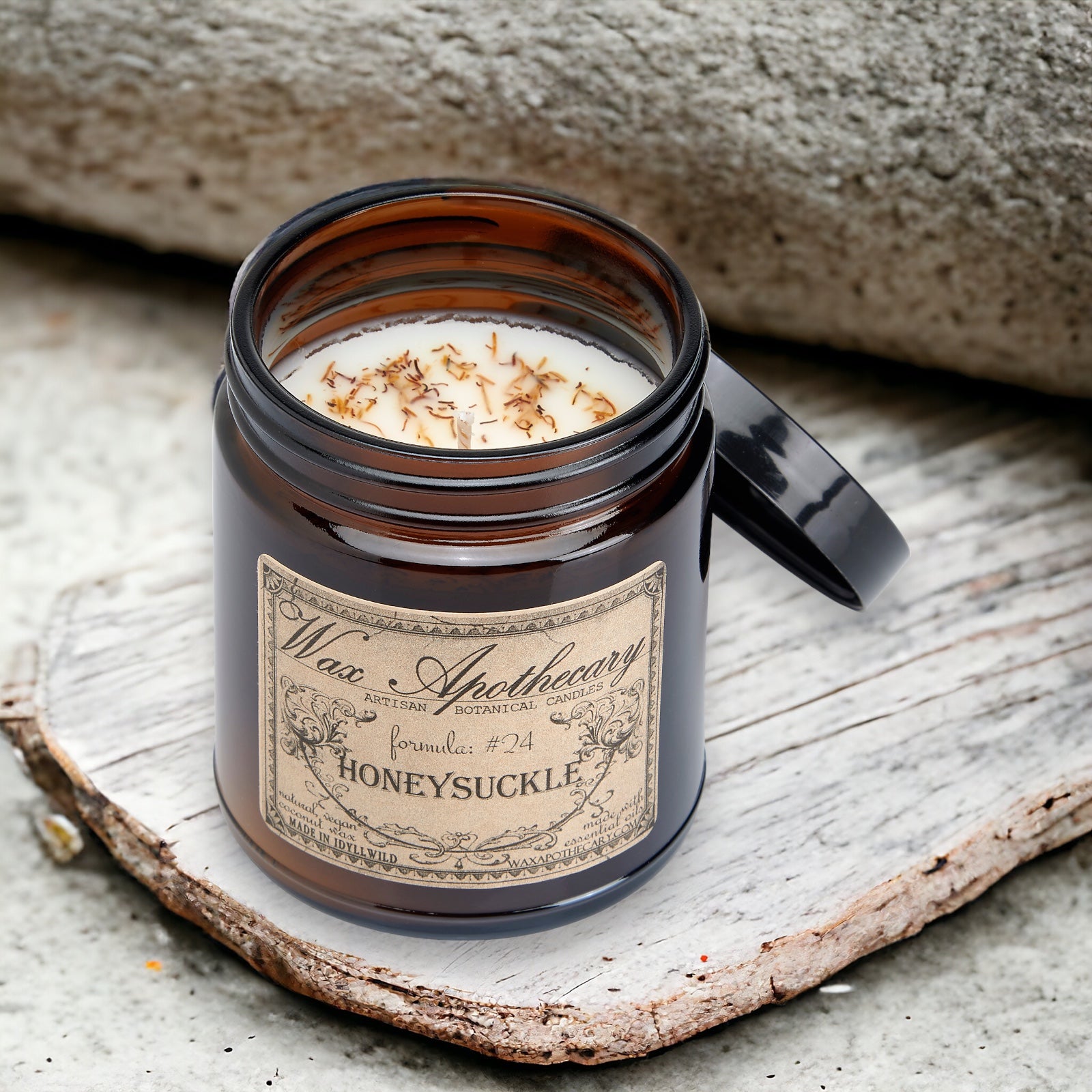 Flower Power Botanical Amber Jar Candle Bundle of 4 Scents: 1 Lavender, 1 Rose, 1 Jasmine & 1 Honeysuckle