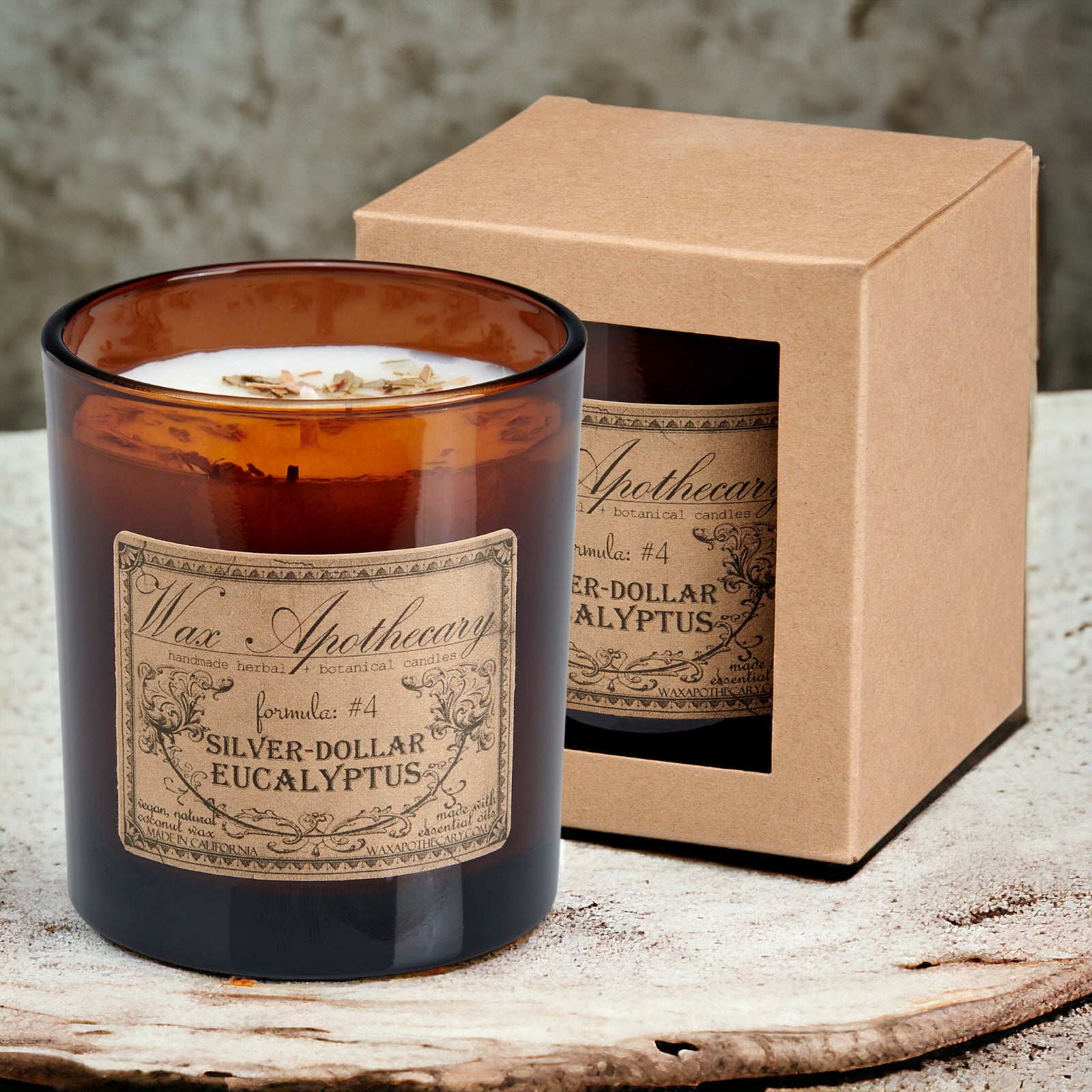 9 oz Silver-Dollar Eucalyptus Artisan Amber Glass Candle