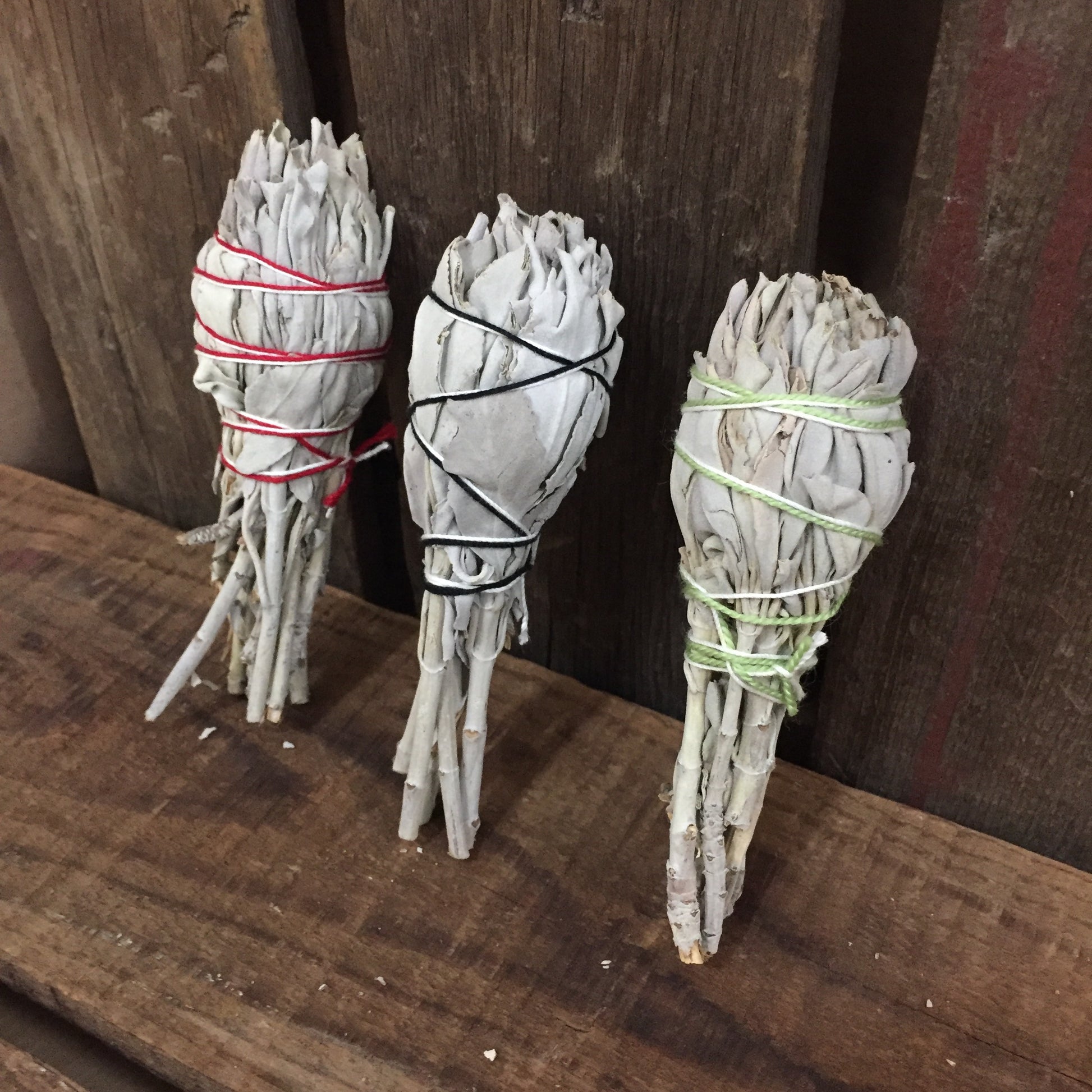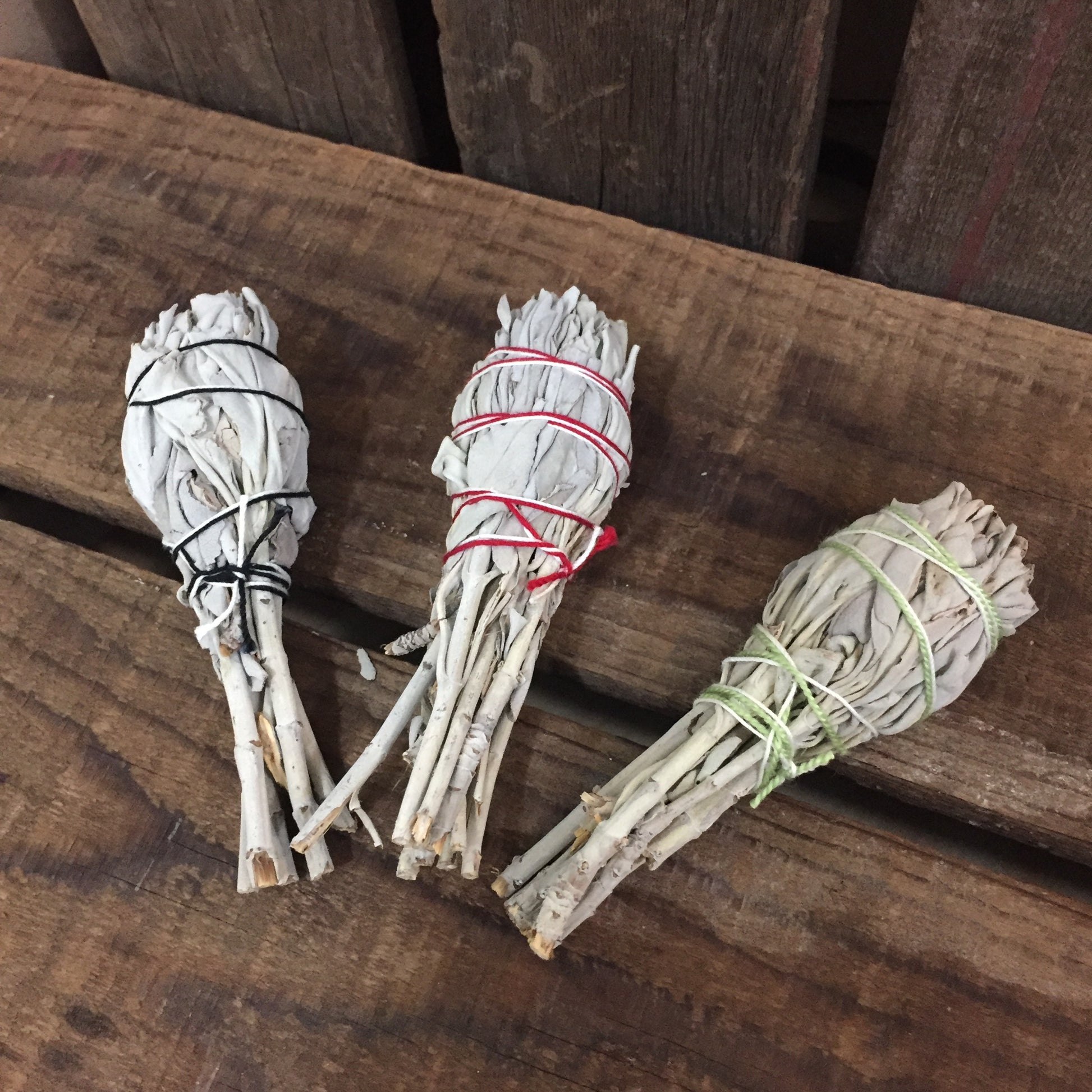 California-Grown White Sage lovingly crafted into hand-tied smudge sticks.
